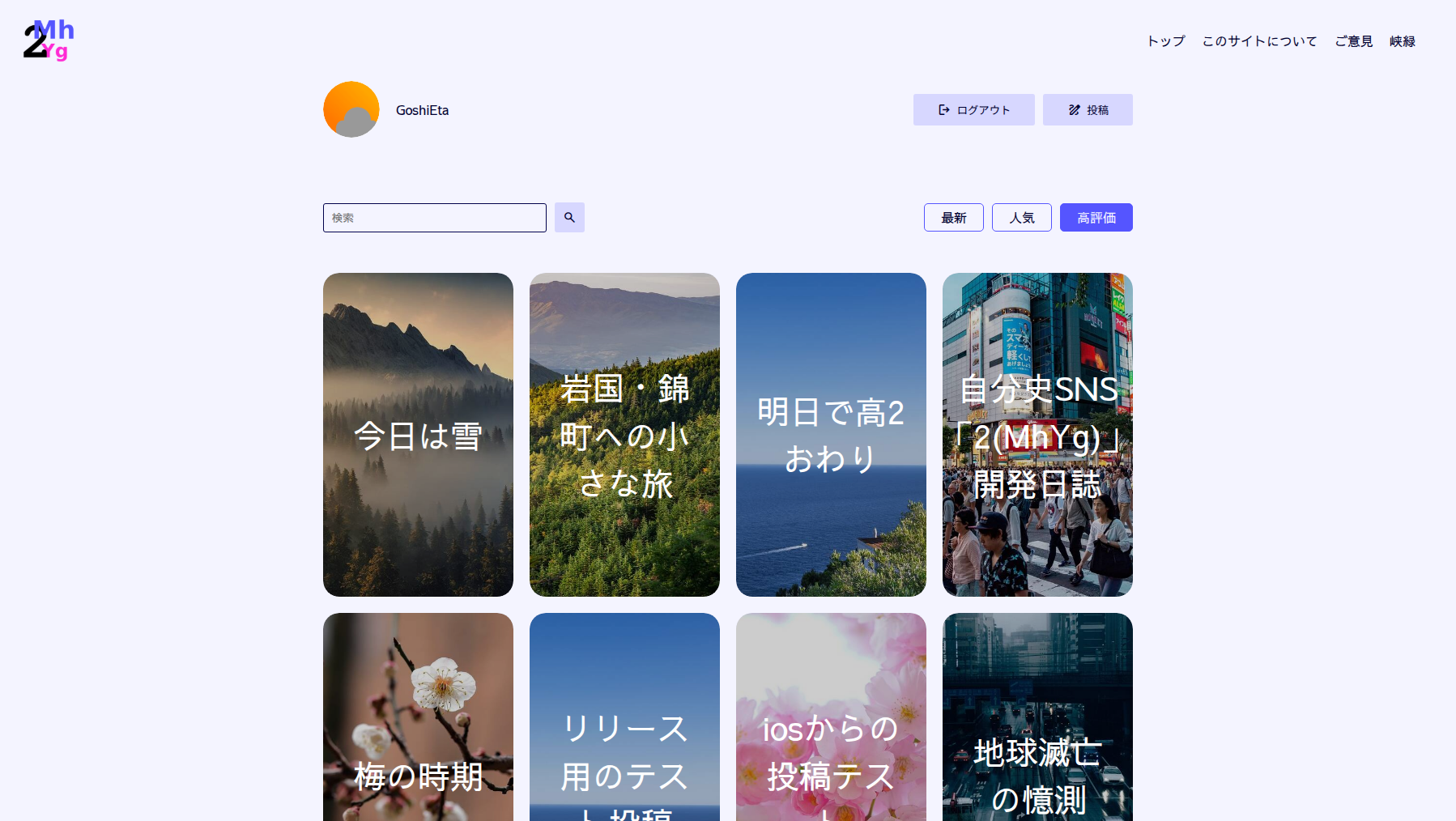 2(MhYg)とは峡緑の立ち上げた、ブログとSNSの中間的なサービスです。